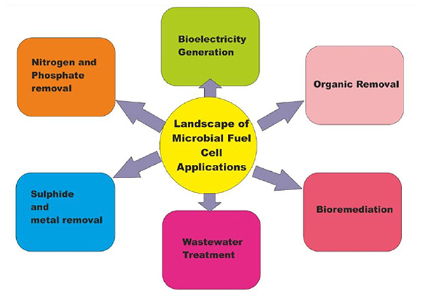 Sustainable wastewater treatment is the need of the hour. Sustainable wastewater treatment endeavours to minimise environmental pollution, to recover and reuse resource, and to generate energy [2]. MFC is a promising technology in sustainable wastewater treatment. Further, the benefits due to the adoption of MFCs include but not limited to energy benefits, economic and environmental benefits and generation of value-added products [2, 12]. Municipal and industrial wastewaters particularly food-processing industries, brewery industries are rich in organic carbon and considered as a source of energy. MFCs in wastewater treatment generate clean electrical energy and also consume less energy as compared to the conventional wastewater treatment methods [2]. Concerning pollutant removal, the decontamination potential of MFCs is significant. It is reported that the persistent contaminants, aqueous contaminants, nutrients [nitrogen and phosphorus], recalcitrant organic pollutants, sulphur compounds and metals are removed by the MFCs. Compared to the conventional wastewater treatment plants, MFCs offer environmental sustainability through low carbon footprint and low sludge production.