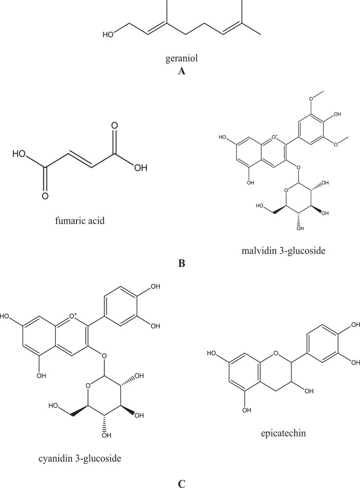Thymus vulgaris L. (A), Malva sylvestris L. (B), Sambucus nigra L. (C)