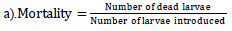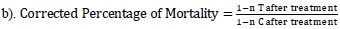 n denotes the number of larvae, T denotes the number of treated larvae, and C denotes the number of control larvae. The tailored percentage mortality value for each concentration was examined to determine its LC50 values by utilizing US EPA probit analysis software (V 1.5).