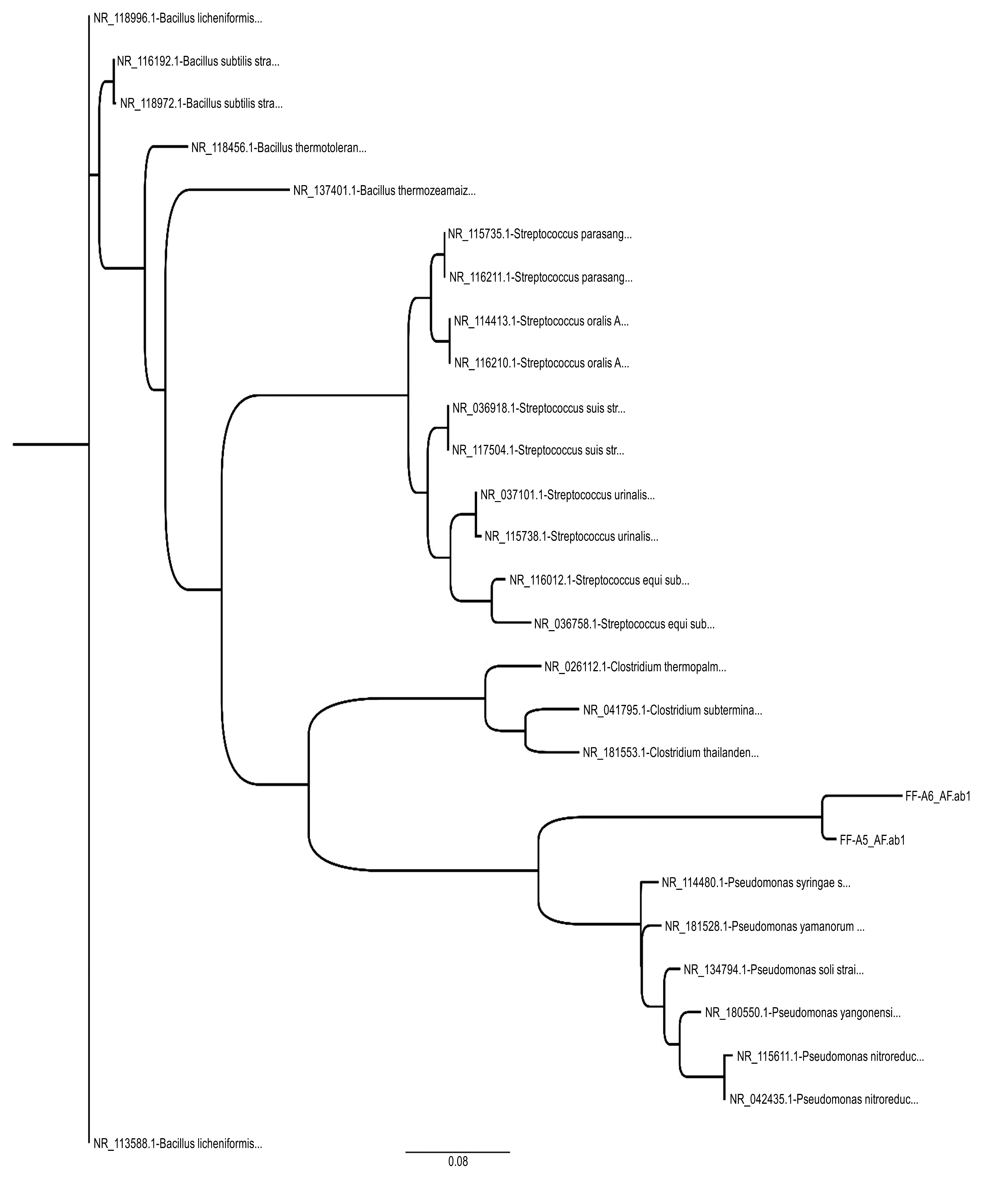 Phylogenetic tree for the reactor substrate.